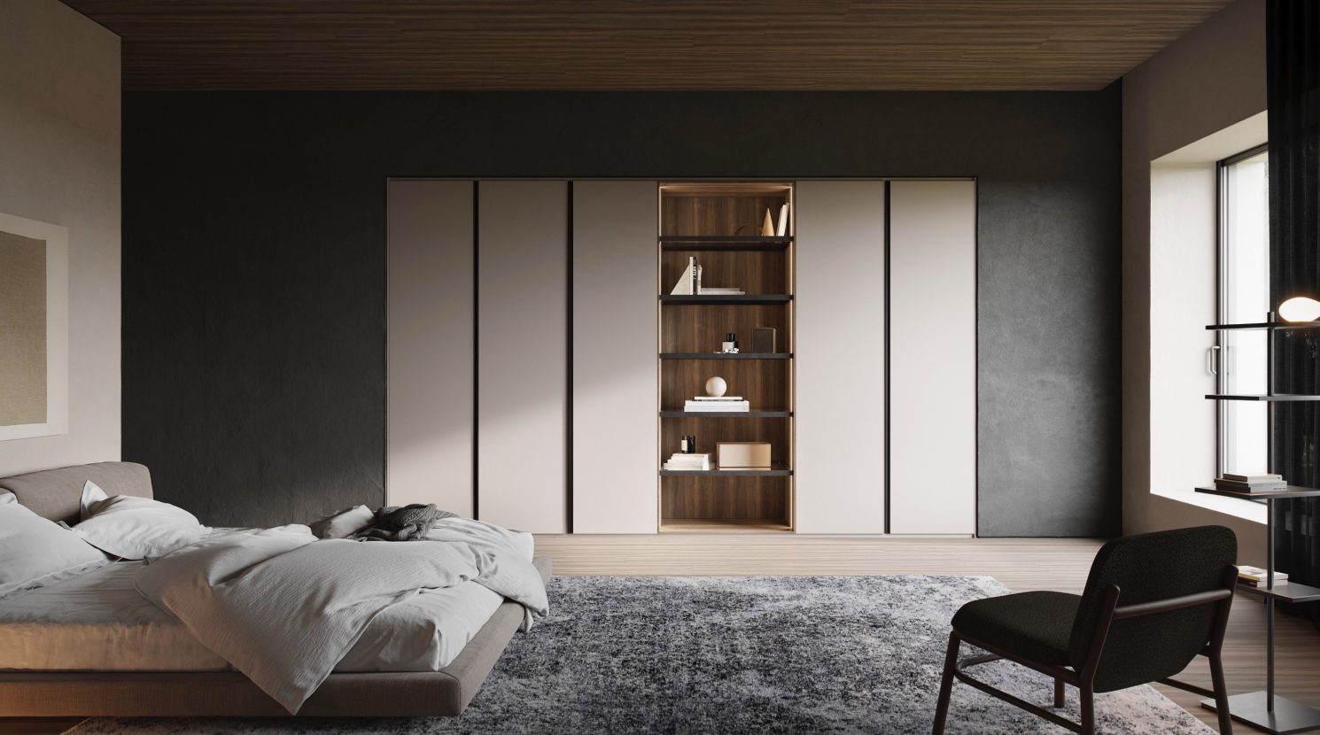 Toda la colección de armarios se diseña y se fabrica a medida lo que permite que puedas moldear el espacio según tus necesidades. La gran variedad de distribuciones interiores y los cuidados accesorios ayudan al orden y uso diario.