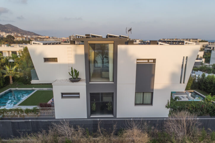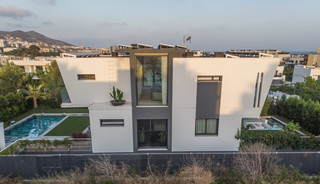 Volumètricament, el nostre equip de professionals va decidir dividir l’edificació en tres peces, amb un volum central principal, que dóna servei a les dues peces laterals blanques i on hi destaca un interessant joc de transparències que aporten profunditat al conjunt, de forma que és possible observar la totalitat de la parcel.la, d’un extrem a l’altre.