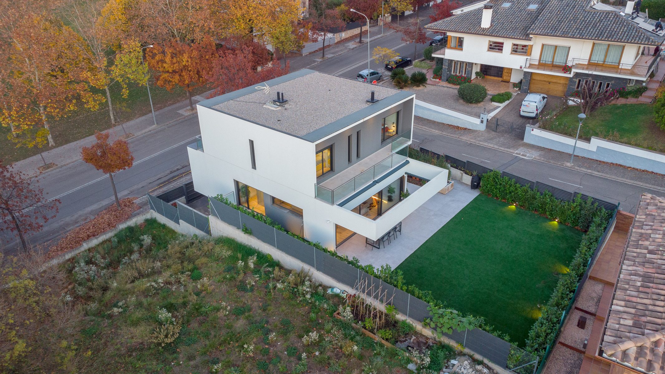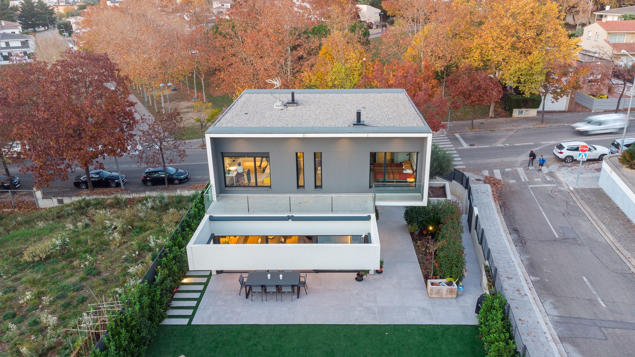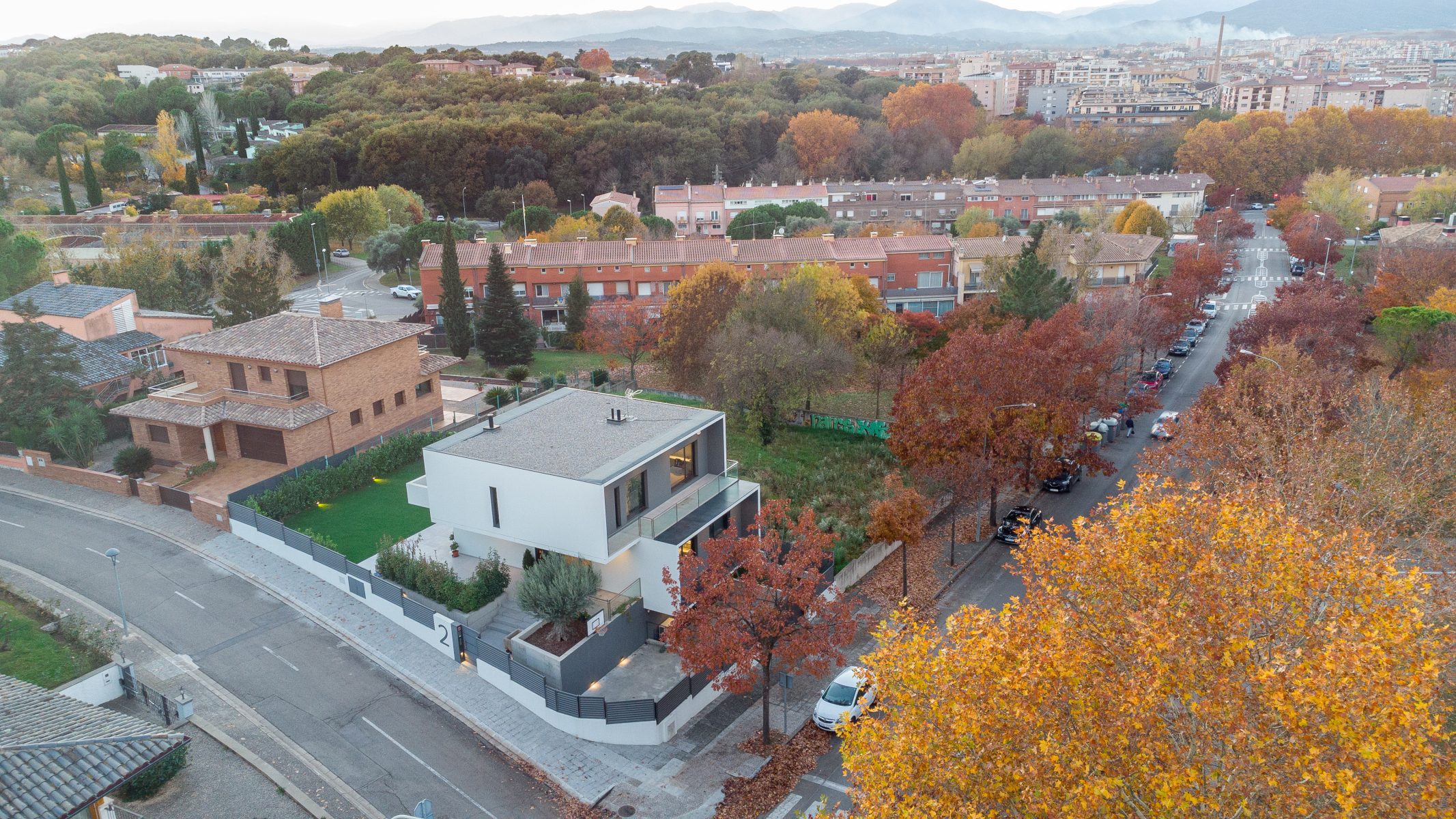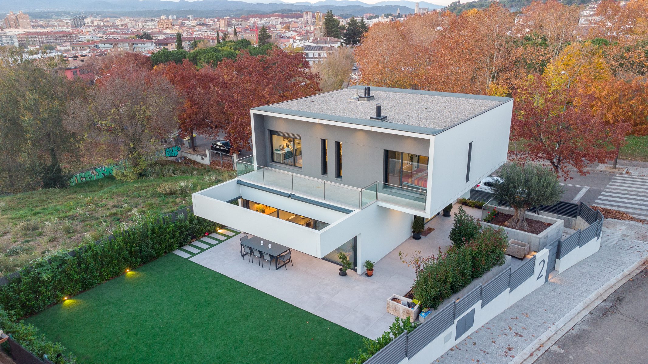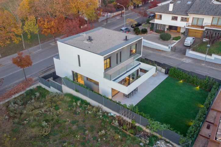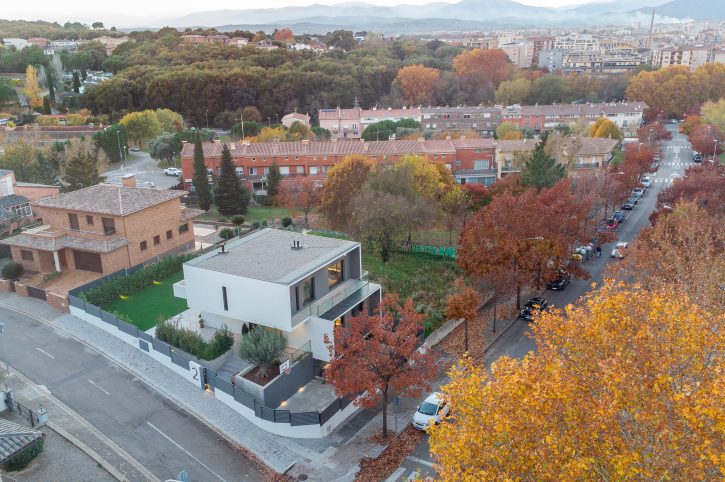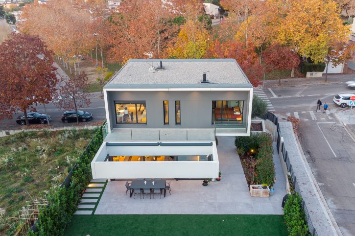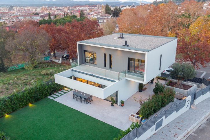 Pel disseny d’aquesta edificació vam plantejar dos volums superposats, en els que la primera planta es recolça suspesa sobre la planta baixa, creant així un interessant joc d’asimetries de considerable caràcter contemporani, una de les característiques imprescindibles d’aquesta construcció d’arquitectura innovadora i sorprenent.