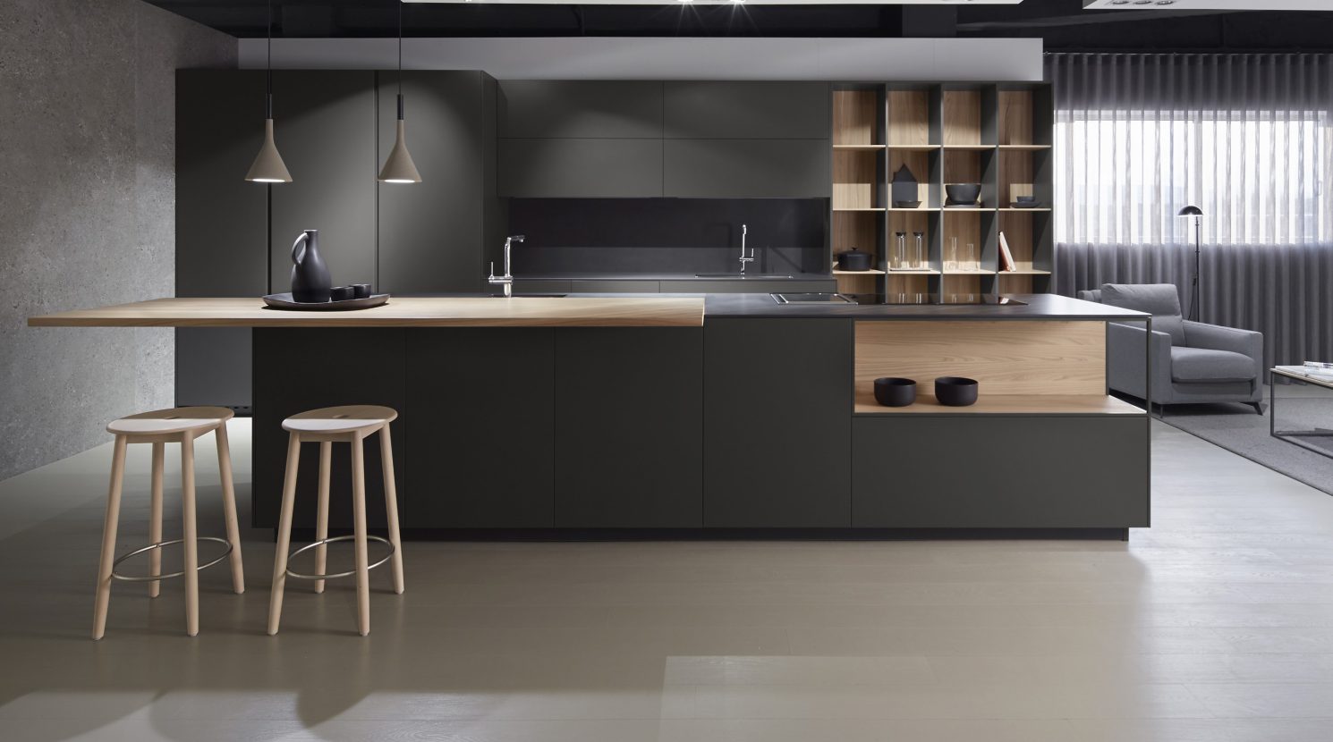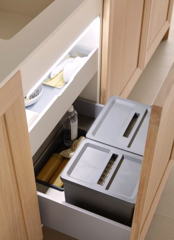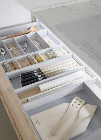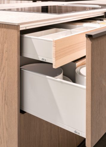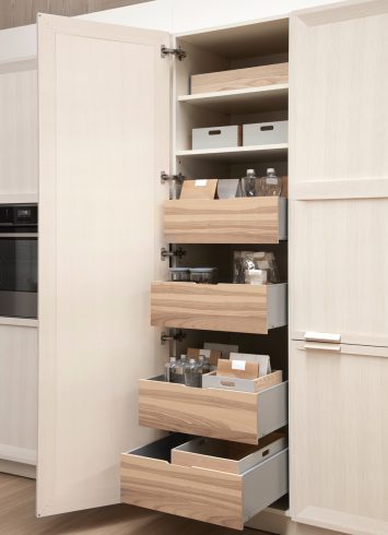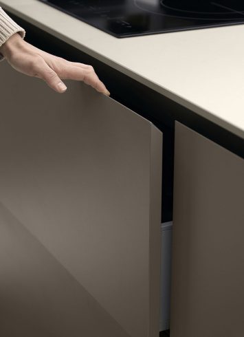 Los sistemas de apertura de Serie 90 resultan muy cómodos para el uso diario. Un simple toque y los cajones se abren, con un ligero empujón se cierran suavemente. Una apertura cómoda sin renunciar a una estética limpia.