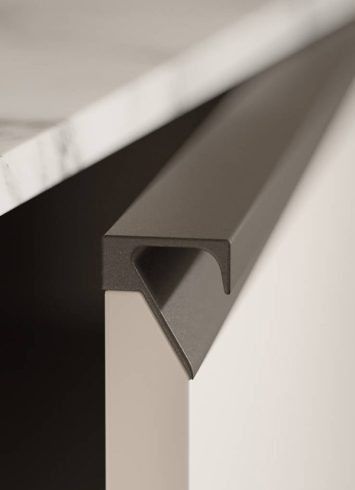 Esta nueva serie es la evolución de la sofisticada estética de Serie D12. El sutil tirador de 12 mm y los complementos en aluminio se integran a la perfección en el mobiliario.