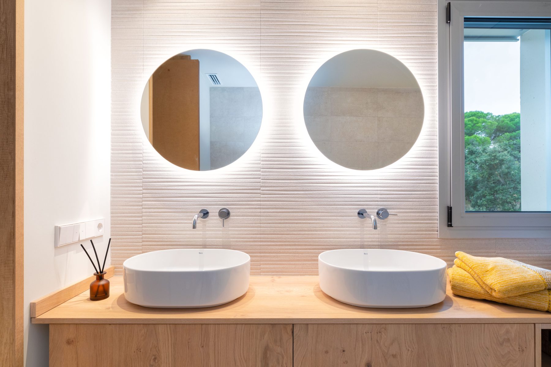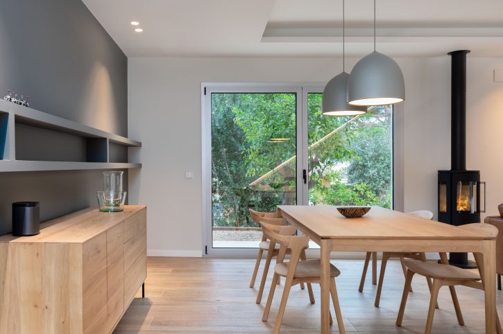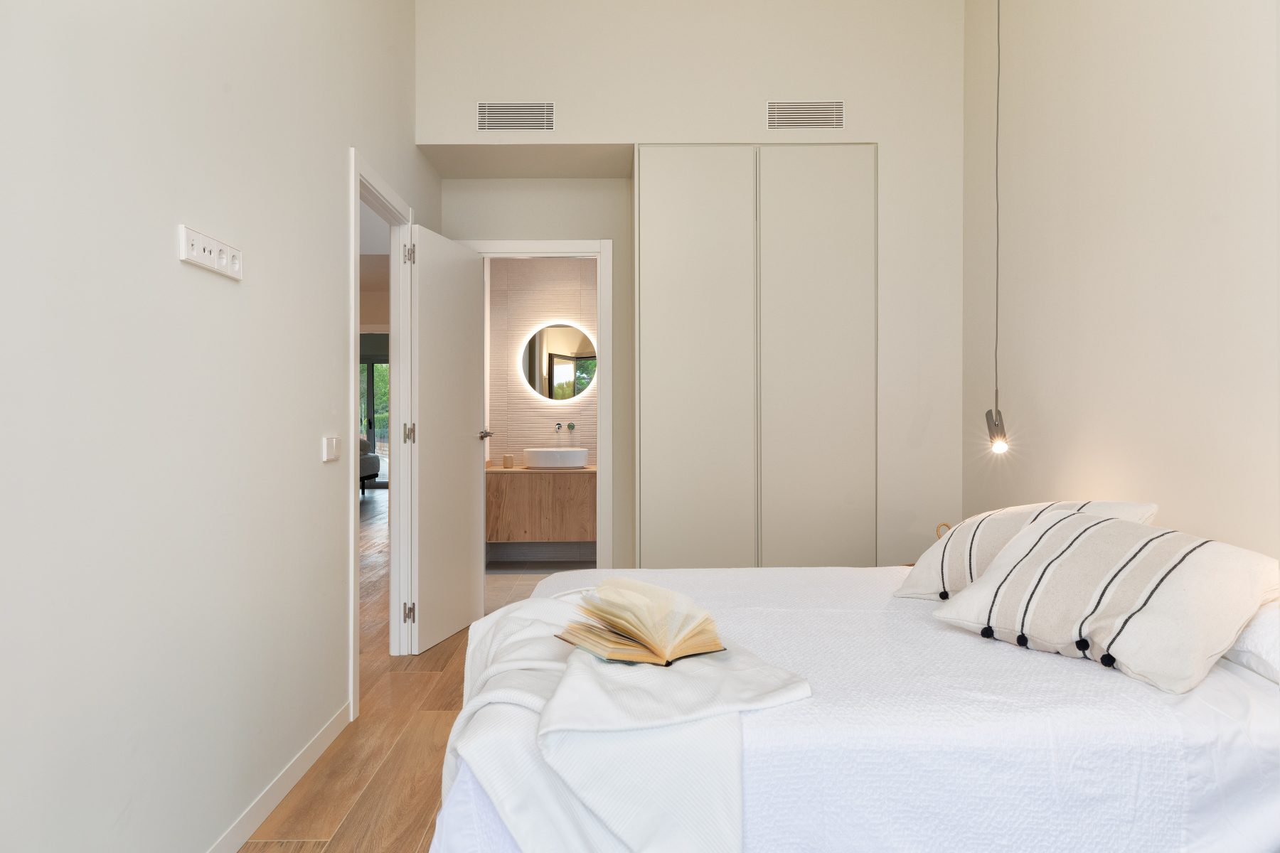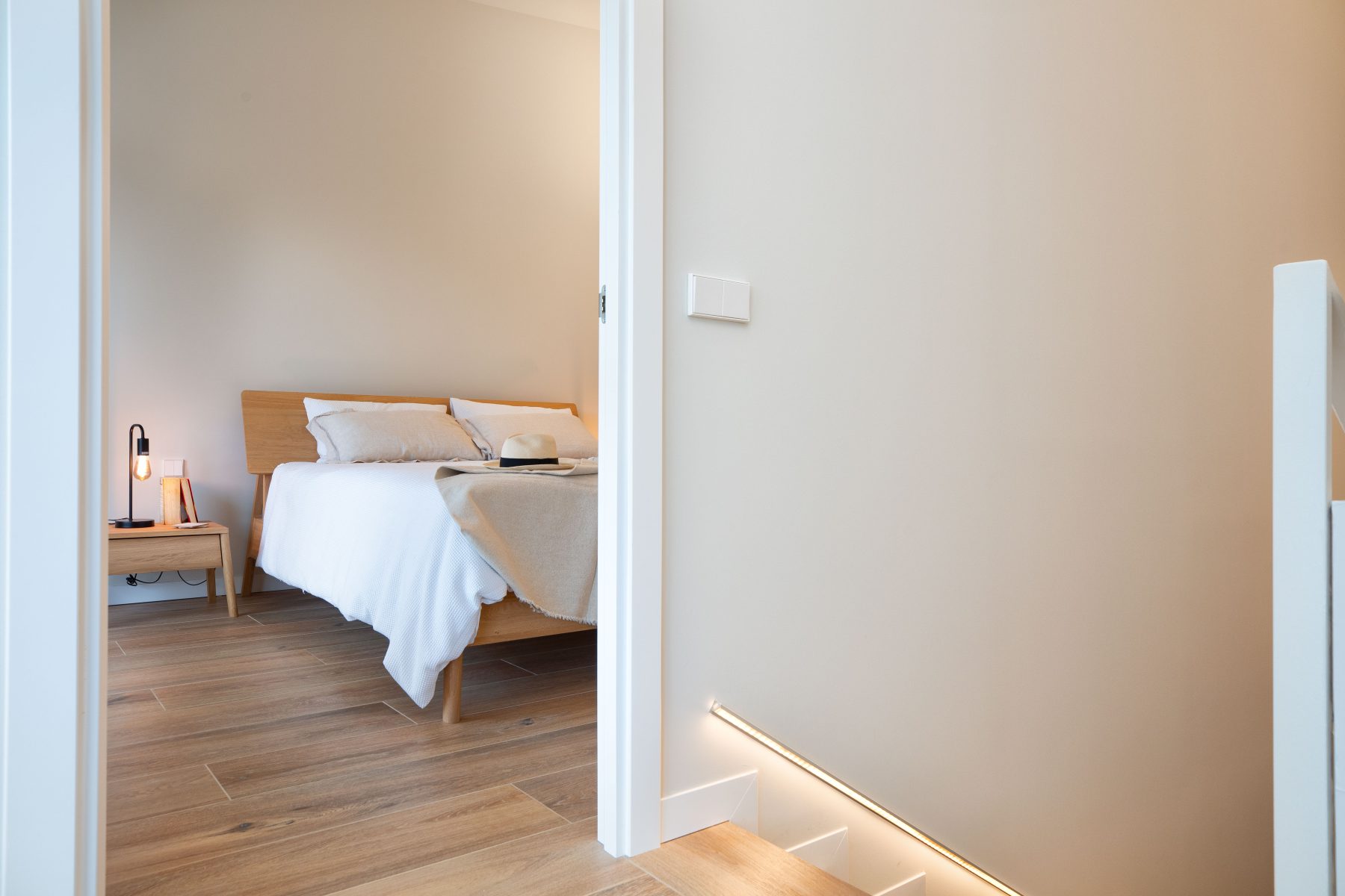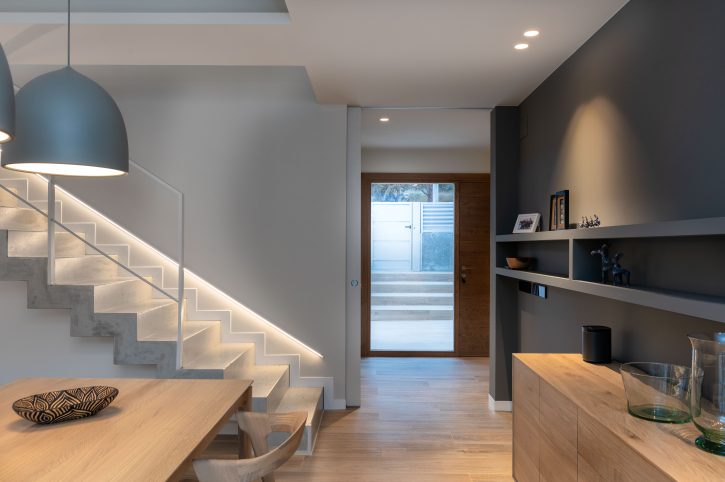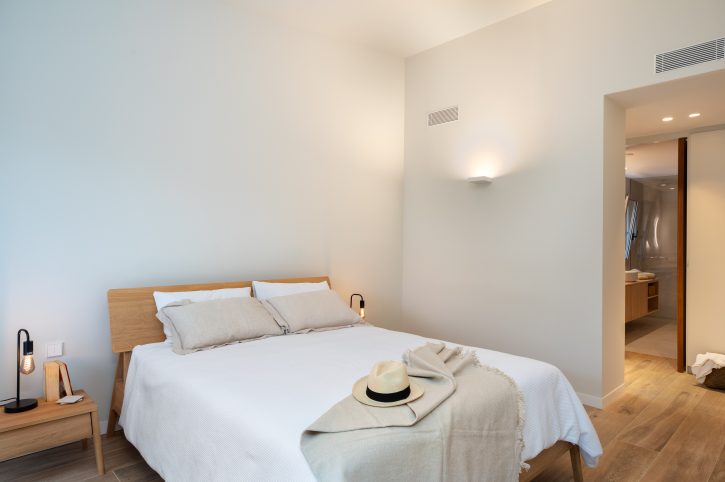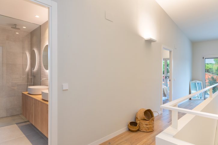 The interior design chosen for this project stands out for the use of Mediterranean and traditional style shades and materials, light colours and natural wood, also in light tones, both for the furniture and flooring, which have incorporated contemporary elements.