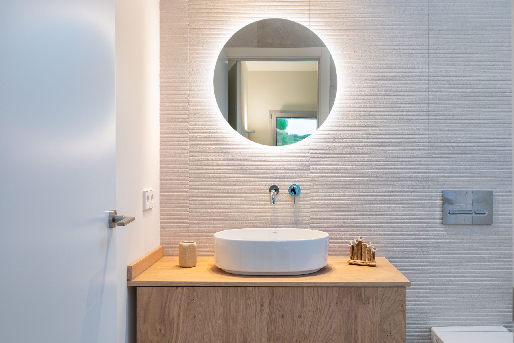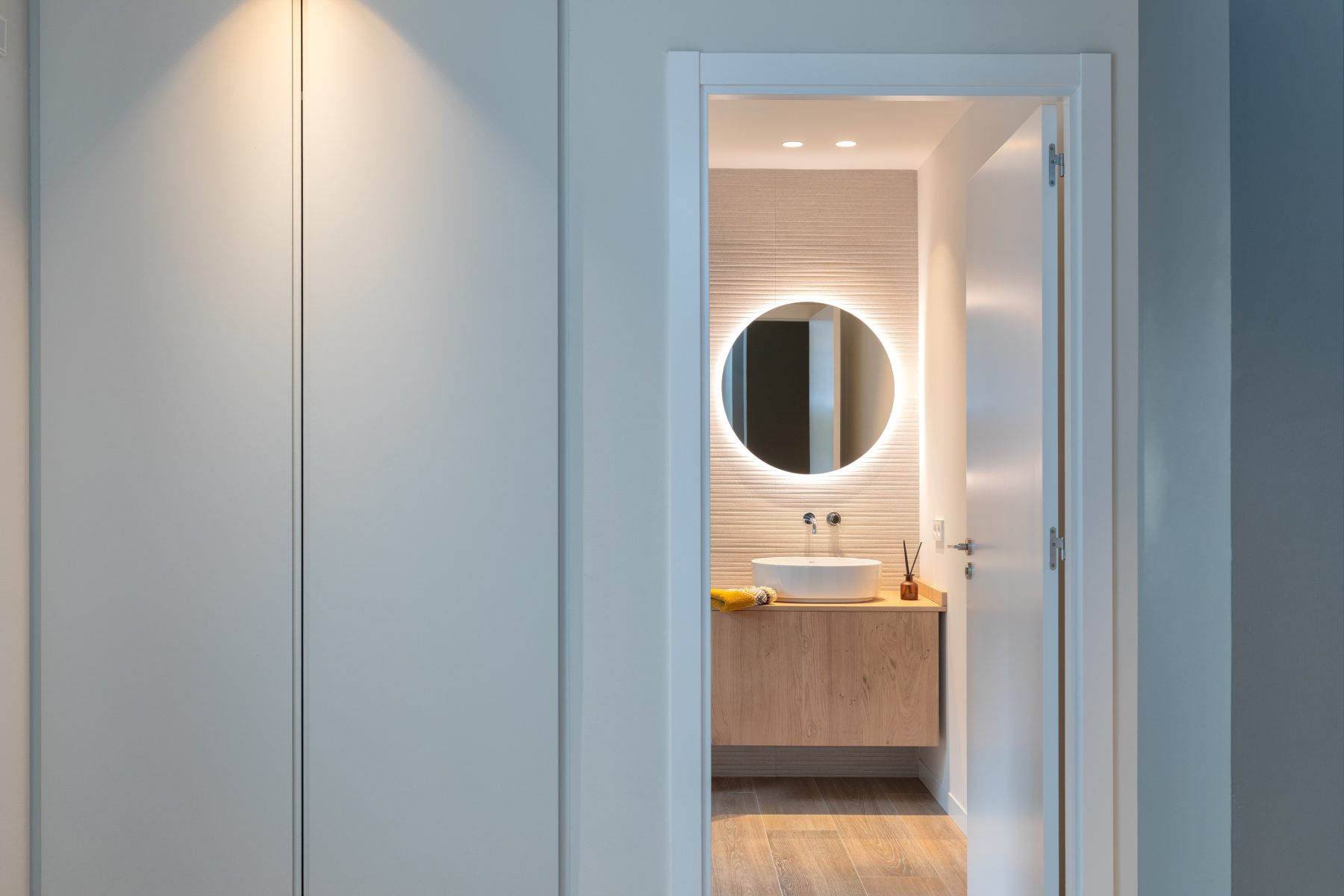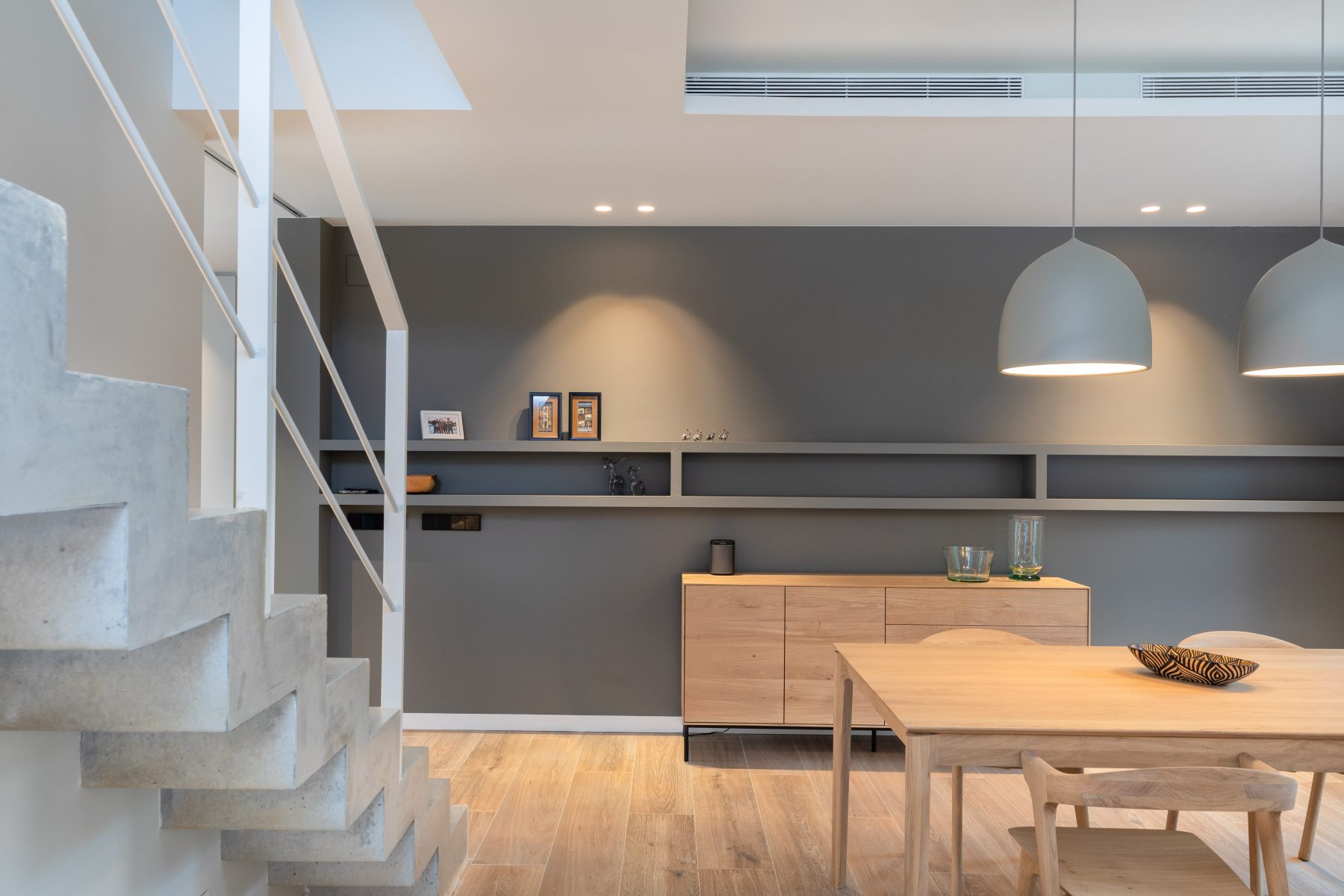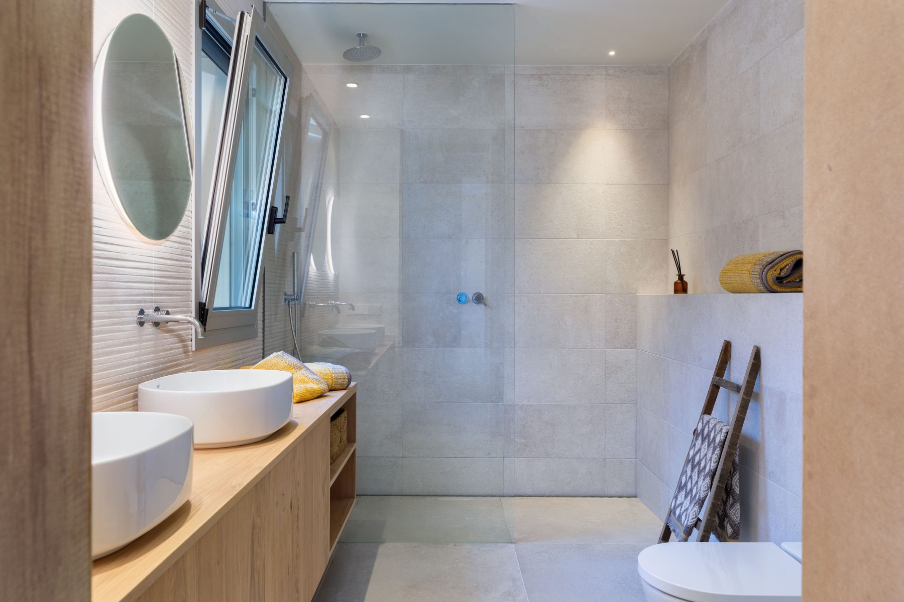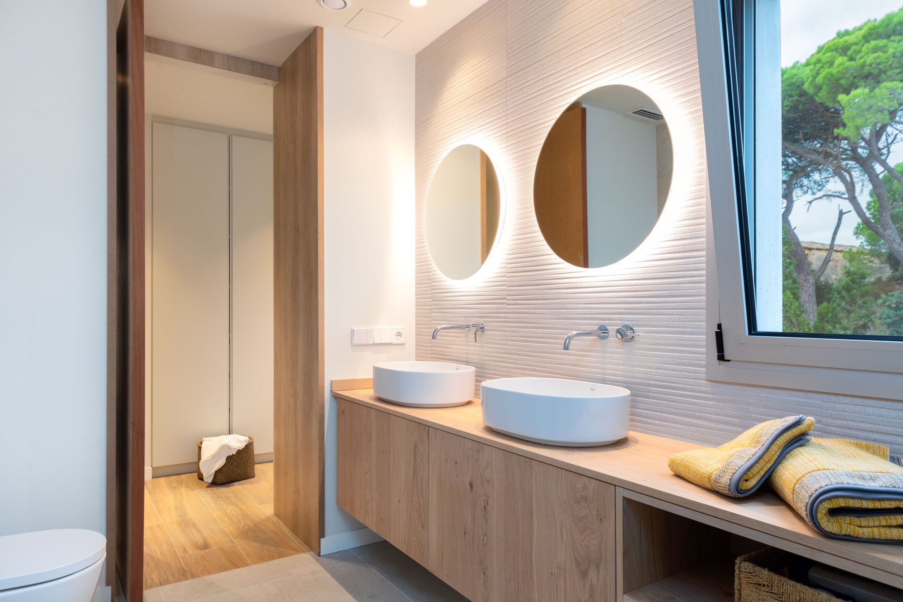 The interior design chosen for this project stands out for the use of Mediterranean and traditional style shades and materials, light colours and natural wood, also in light tones, both for the furniture and flooring, which have incorporated contemporary elements.