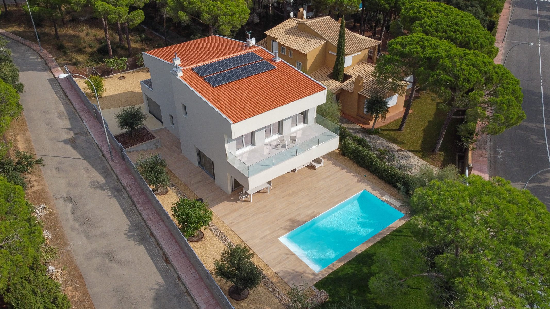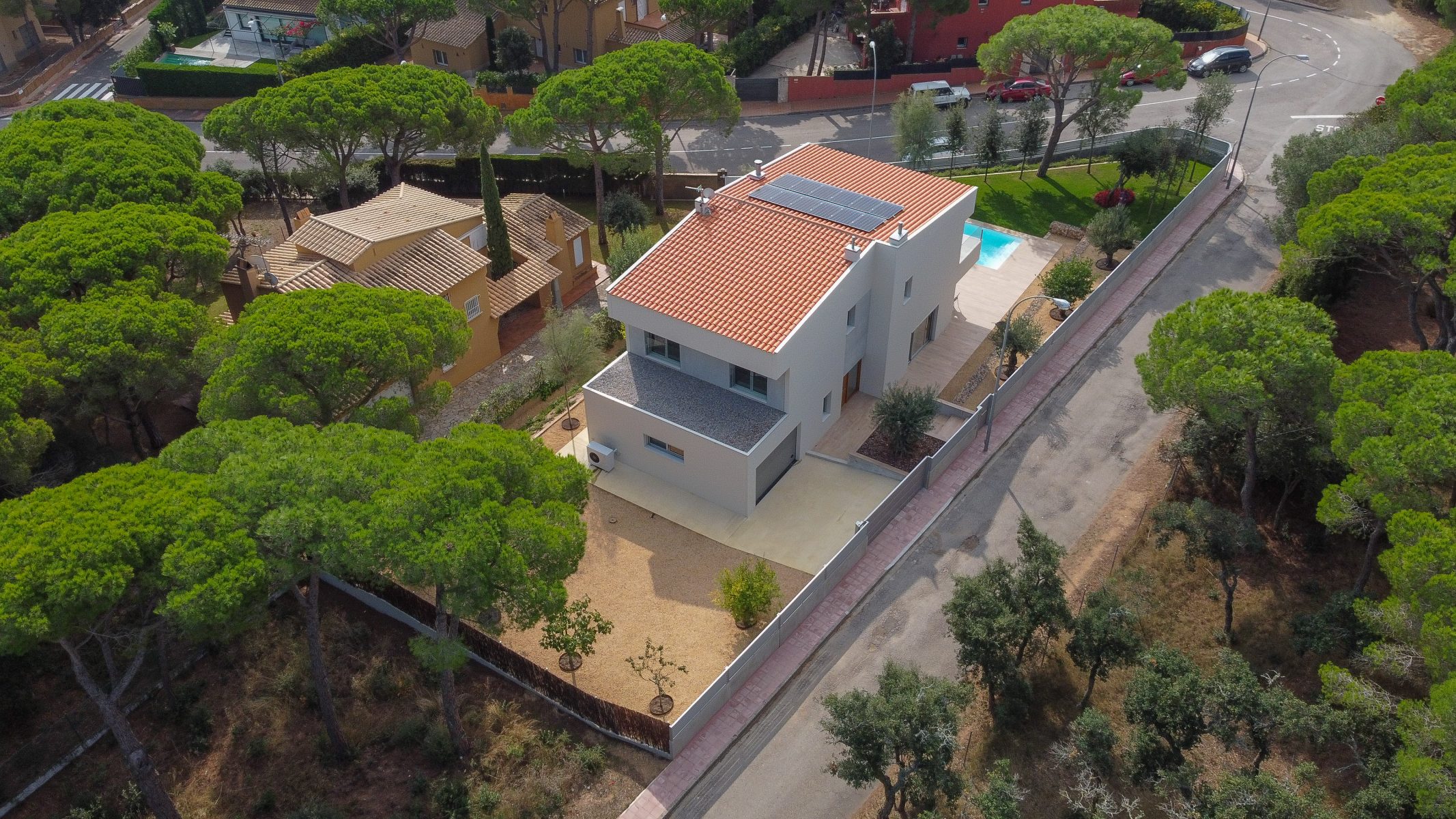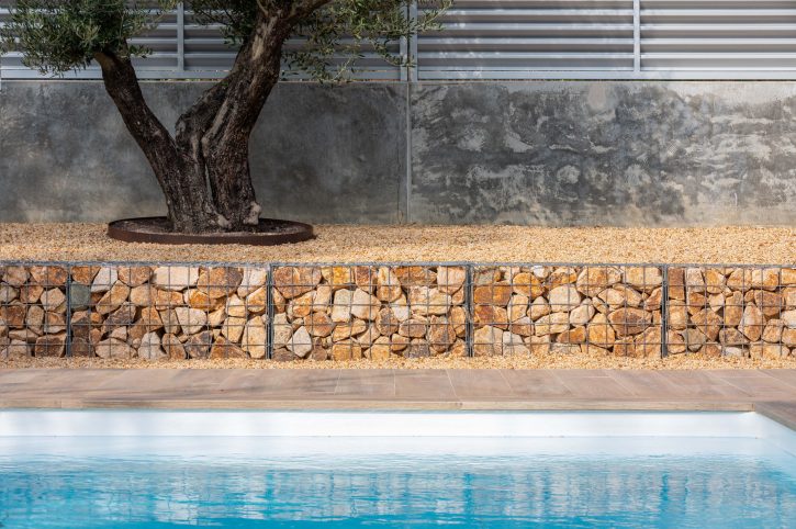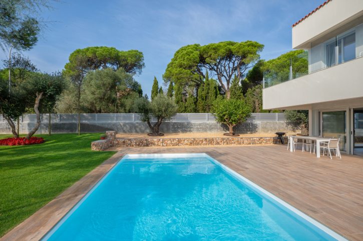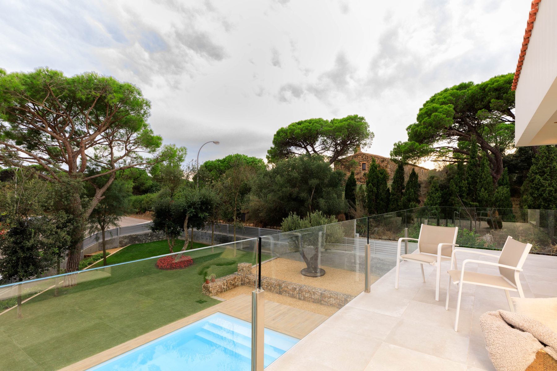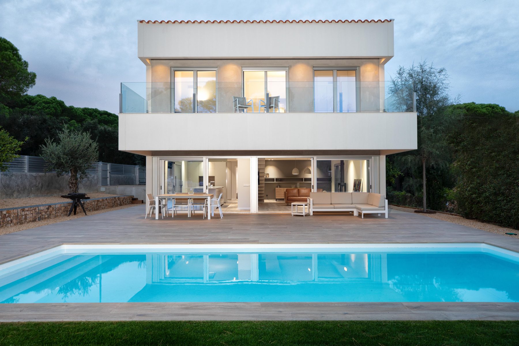 For the landscape, adapted to the slope of the terrain, natural material in earth tones have been used, in tune with the local landscape. Emphasised by the conservation of some characteristic trees of the Mediterranean, such as olive, pine and lemon trees. So that the project as a whole manages to merge with the natural environment of the Baix Empordà.