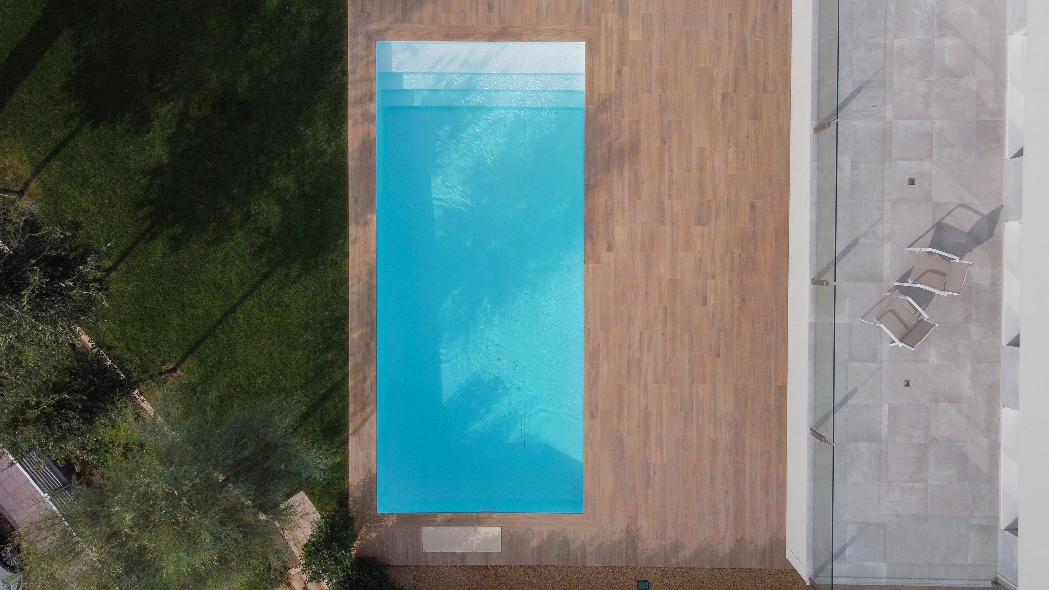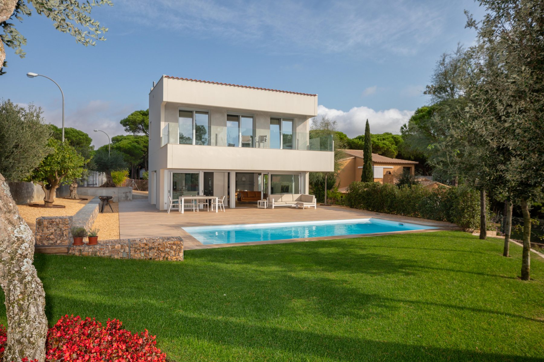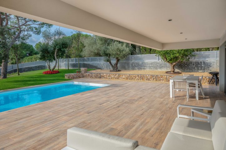 This porch also serves as an element of organisation between the house and the swimming pool, thus creating a very comfortable and welcoming space.