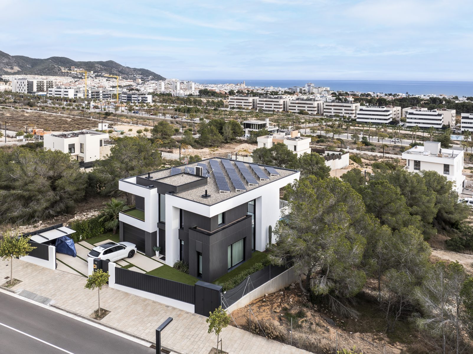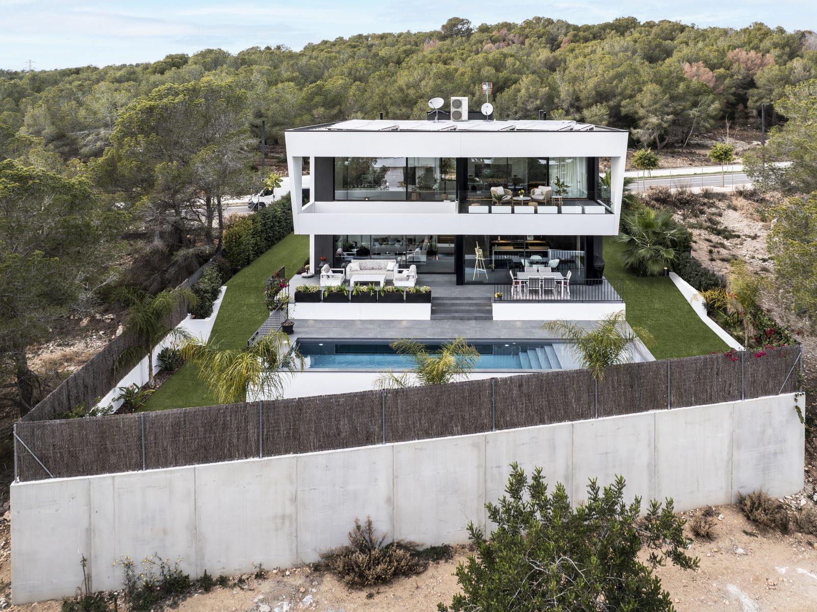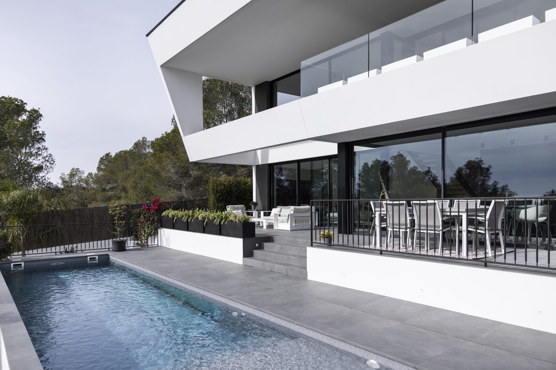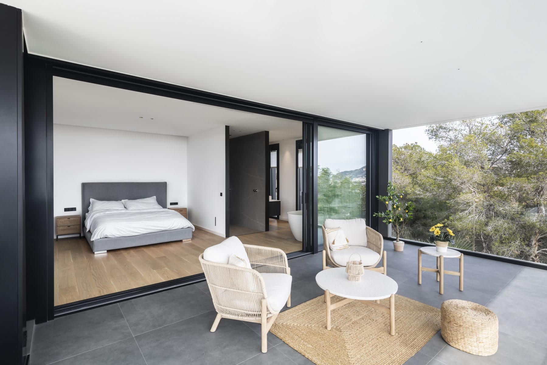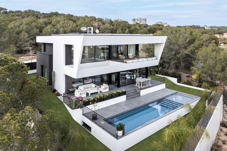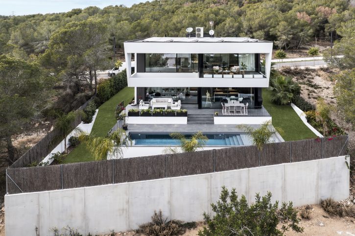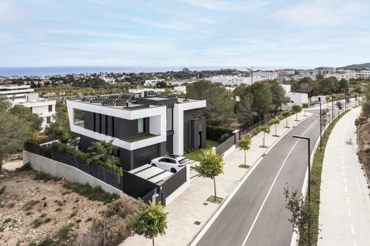 Todo este proyecto destaca por su estilo minimalista, tanto en el interior como en el exterior. Cada detalle, desde la construcción hasta la distribución, pasando por los materiales y la propuesta de interiorismo, ha sido cuidadosamente seleccionado para crear una armonía perfecta y un ambiente contemporáneo.