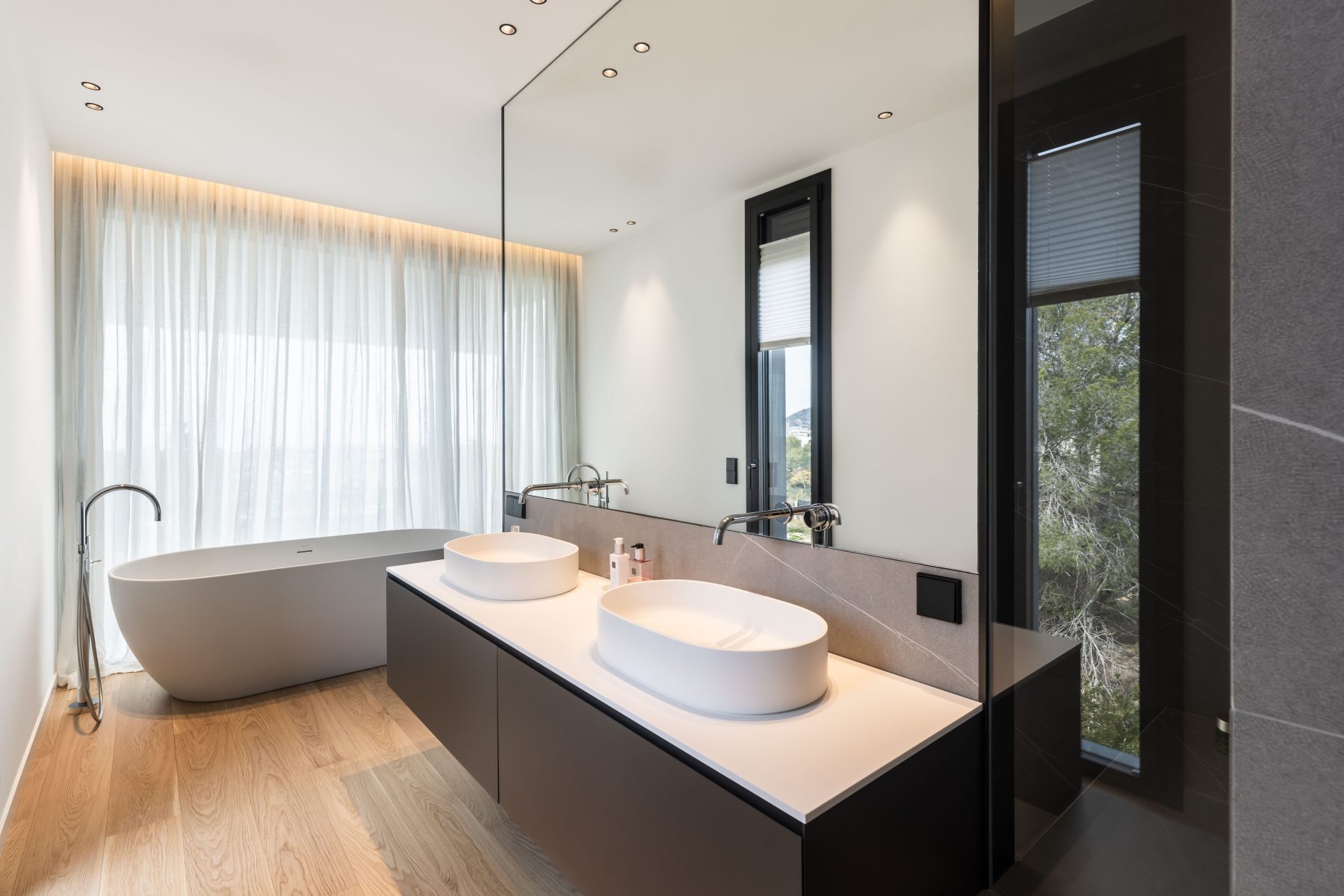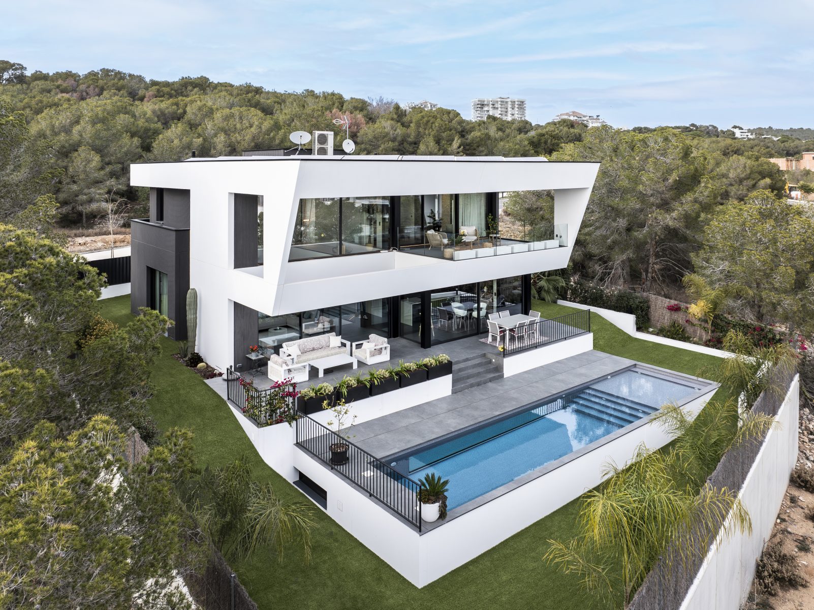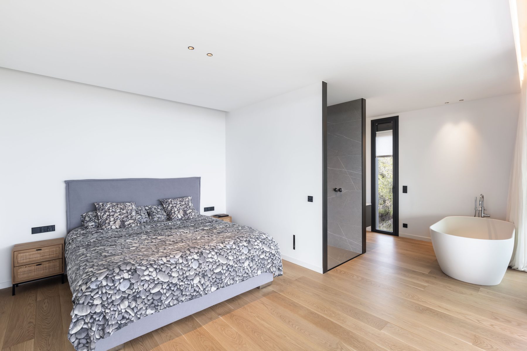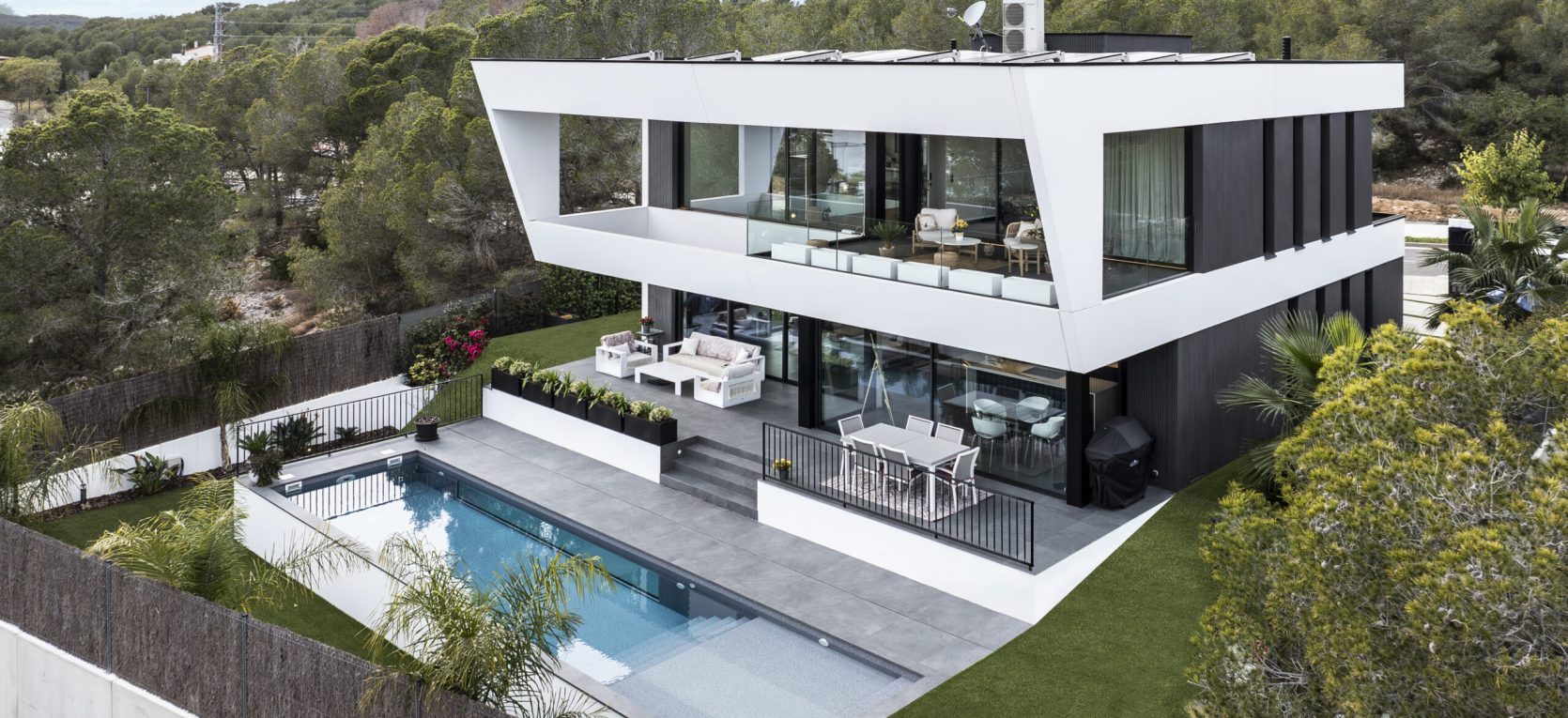 Todo este proyecto destaca por su estilo minimalista, tanto en el interior como en el exterior. Cada detalle, desde la construcción hasta la distribución, pasando por los materiales y la propuesta de interiorismo, ha sido cuidadosamente seleccionado para crear una armonía perfecta y un ambiente contemporáneo.